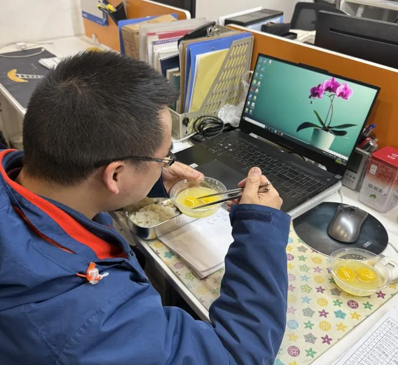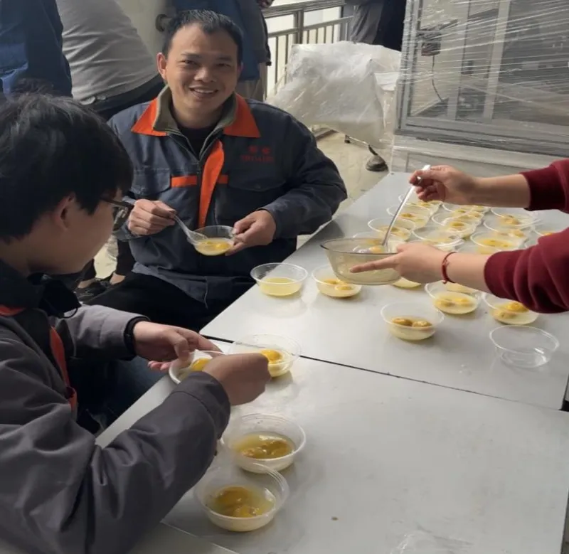 ในระหว่างรับประทานอาหารกลางวัน ทุกคนต่างเพลิดเพลินไปกับความหวานอันแสนอบอุ่นนี้ทั้งในสถานที่ทำงานและตลอดเวิร์คช็อป ถังหยวนแต่ละคนต่างอวยพร และท่ามกลางความอบอุ่นที่อบอ้าว ทุกคนรู้สึกถึงความสบายใจของครอบครัว ชัวรุ่ย